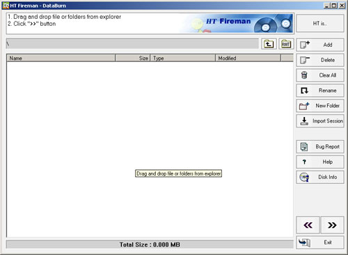 HT Fireman CD/DVD umí vypálit AudioCD, datové CD i DVD. Jeho předností je rychlé vypalování. Ovládání je také jednoduché. V prvním kroku zvolíte, jestli chcete pálit CD či DVD, v druhém pak přidáte soubory a vypálíte. Podporuje i vypalování "za letu".