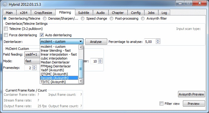 Hybrid je jednoduchý a snadno použitelný program, který dokáže převést různé typy vstupních souborů do formátu x264, Xvid, ogg, případně MP3. Vaše videa lze s tímto programem snadno ořezávat, měnit rozměry, určovat poměry stran nebo vkládat různé filtry