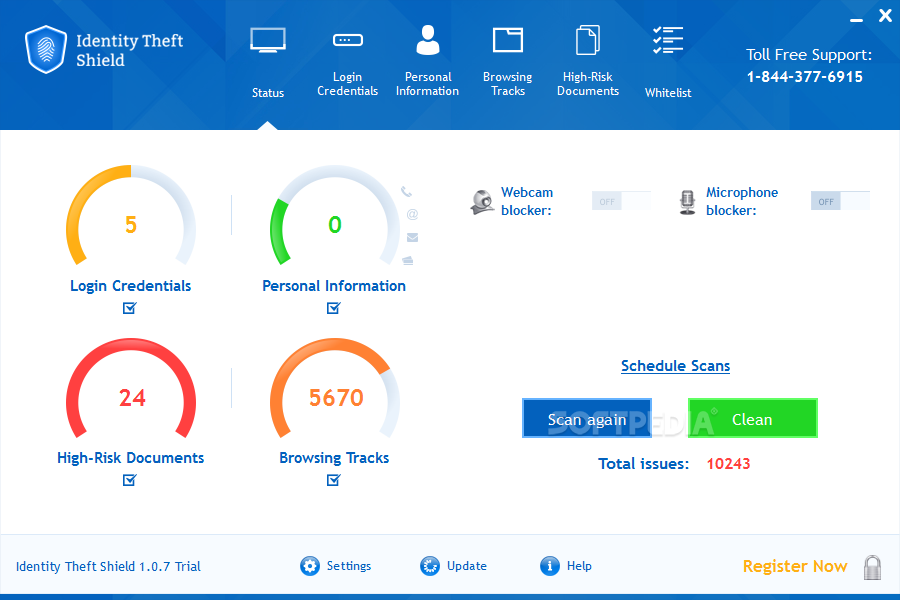 Identity Theft Shield je nástroj, který je určen na mazání citlivých informací, které se ukládají průběžně při surfování na internetu. Cílí především na přihlašovací údaje, osobní informace, dokumenty s citlivými údaji apod. Nástroj obsahuje také možnost pro dočasné zablokování webkamery nebo mikrofonu. Ostatní aplikace tak k těmto komponentám nebudou mít přístup. K dispozici je podpora pro internetové prohlížeče Google Chrome, Mozilla Firefox, Microsoft Edge a Internet Explorer.