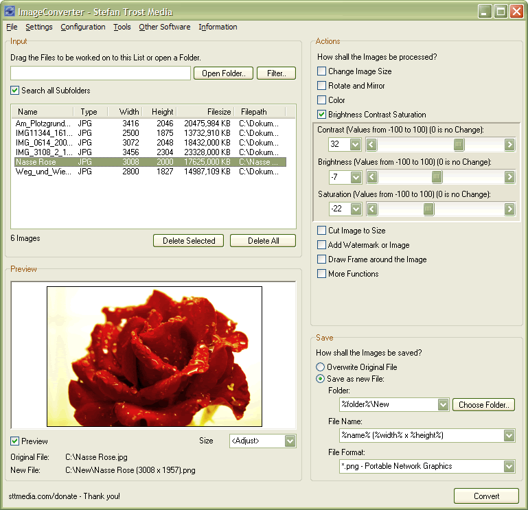 S programem Image Converter lze snadno konvertovat obrázky a fotografie do různých grafických formátů, měnit jejich velikost, přidat vodotisk, změnit hodnotu barev atd.
