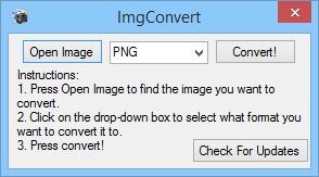 ImgConverter je jednoduchý, ale účinný a rychlý převodník obrázků. Program podporuje převod mezi PNG, JPG, TIFF, GIF, WMF, ICO, EMF a BMP.
