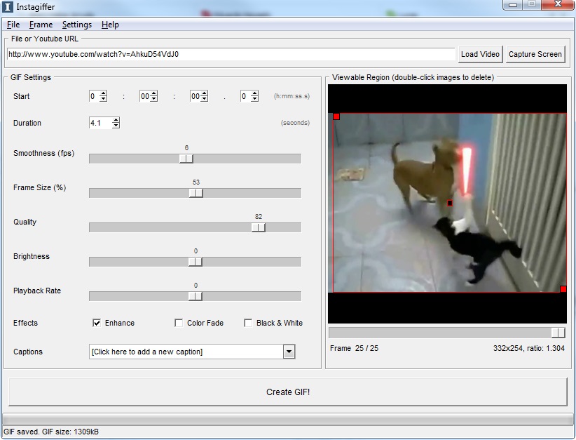 Instagiffer usnadňuje vytvoření GIF přímo z video souborů, on-line video webů jako YouTube nebo něco na obrazovce (tj. Netflix, hry, atd). Je to zdarma, bez reklamy, spyware nebo vodoznaky!