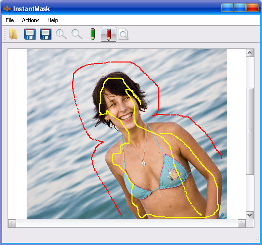 Chcete-li použít InstantMask, stačí na fotografii označit objekt, který chcete zachovat, a pozadí, které chcete odstranit. Aplikace automaticky odstraní pozadí a uloží vám objekt do samostatného souboru.