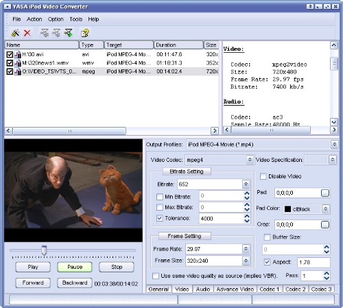 S programem iPod Video Converter lze převádět většinu video formátů, jakou jsou DivX, XviD, MOV, RM, rmvb, MPEG, VOB, DVD, WMV, AVI do video formátu iPod. Nabízí špičkovou rychlost převodu a uživatelsky příjemné prostředí. iPod Video Converter poskytuje vše, co potřebujete pro snadný převod vašich filmů do iPod formátů!