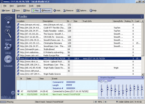 iRadio má přednastaveno přibližně 20 internetových rádiových stanic. Pro přehrávání nepotřebuje další přehrávače jako např. Windows Media Player.