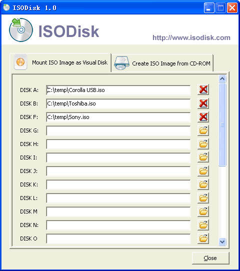 ISODisk je jednoduchý program, který umožňuje vytvářet a připojovat obrazy disků do virtuálních mechanik.