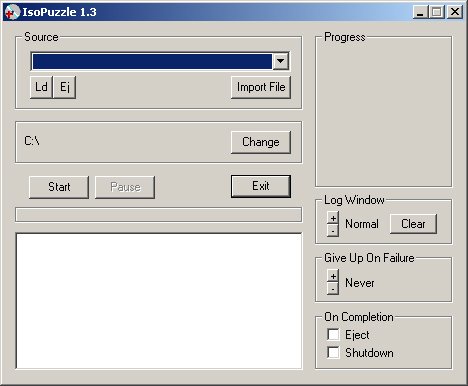 IsoPuzzle je nástroj, který vám pomůže obnovit data z poškozených nebo poškrávaných disků. Obnovené sektory se ukládají ve formátu ISO a snadno převádí zpět na disk. Lze je číst s programy, jako jsou Daemon Tools nebo WinRAR.