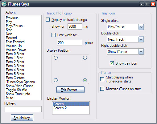 iTunesKeys je bezplatná aplikace, která vám umožňuje ovládat hudební přehrávač iTunes pomocí globálních klávesových zkratek. To je užitečné, pokud chcete ovládat iTunes bez nutnosti mít jeho okno aktivní.