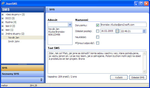 Joan SMSSend je program pro Windows pro posílání SMS zpráv do všech sítí českých mobilních operátorů už za cenu 1.28 Kč. Program využívá služby na http://sms.vsezasms.cz Na této službě se zaregistujete a můžete začít posílat SMS pomocí tohoto programu.