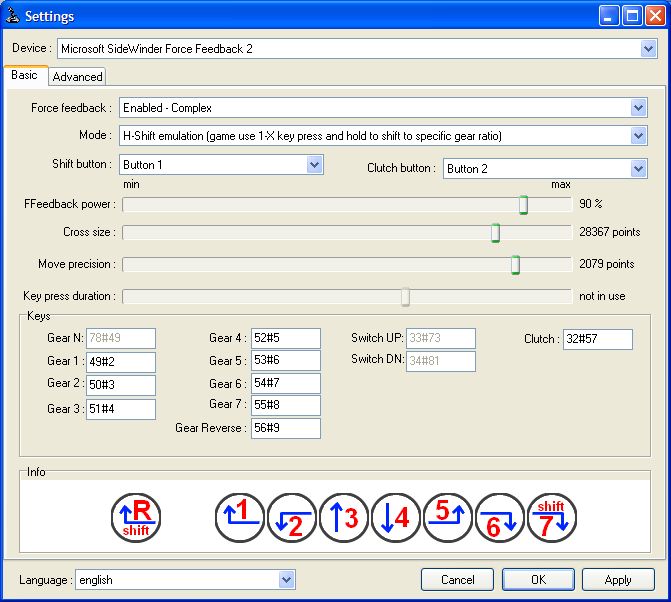 Simulace kláves je nastavitelná pro mód sekvenčního řazení (stisky klávesy pro řazení směrem nahoru a dolů) například pro NFS, i pro mód kde je zařazená rychlost specifikována trvalým stiskem kláves 1 až 6 + N, jako je tomu například ve hře TestDrive.