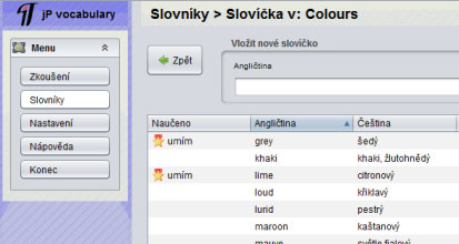 Aplikace jP vocabulary slouží ke zkoušení a učení se slovíček v libovolných jazycích. Aplikace je nyní zcela zdarma (freeware)! Běží na OS Windows a Linux. Pro její chod je nutné mít nainstalovanou na PC Javu.