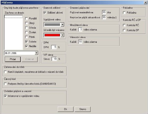 Aplikace pro vedení videopůjčovny pro plátce i neplátce DPH. Možnost připojení čtečky čárového kódu EAN8 / EAN13. Aplikaci lze provozovat i na lokální síti. Program není hardwarově náročný a běží pod W98, WMe, W2000, WXP. Pro ukládání dat se využívá velice spolehlivý MSSQL server...