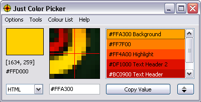 Just Color Picker je malá a jednoduchá aplikace, která Vám umožní zjistit barvu z libovolné části obrazovky.