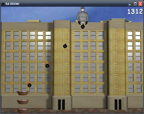 KA-Boom! je jednoduchá a zábavná hra, ve které musíte chytat bomby. Na střechách budov se nachází šílenec, který spouští všude možně nebezpečné bomby, které máte za úkol pomocí vědra chytat a zachránit tak budovy. Pro ovládání použijte myš.