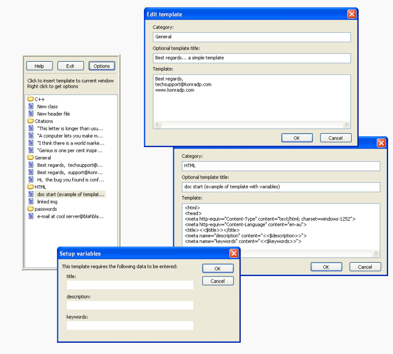 Díky programu Ka Type In si můžete nadefinovat často používané textové úryvky a vkládat je do libovolných apllikací, dokumentů či webových formulářů. Stačí vytvořit soubor s texty včetně emailů, psč apod. Program také může automaticky dokončovat věty.