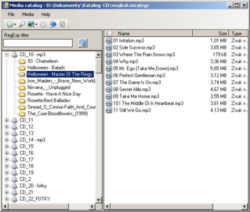 Katalog médií je program sloužící pro katalogizaci různých médií jako jsou CD-ROM disky, pevné disky, mapované síťové disky, apod. Pomocí tohoto programu lze načíst obsah média a později si prohlížet obsah tohoto média. Program eviduje základní údaje o souborech a adresářích jako je např. velikost, datum vytvoření, modifikace, apod. Jako velmi přínosnou a inovativní vlastnost tohoto programu lze označit vyhledávání pomocí regulárních výrazů, takže je vyhledávání velmi flexibilní.
