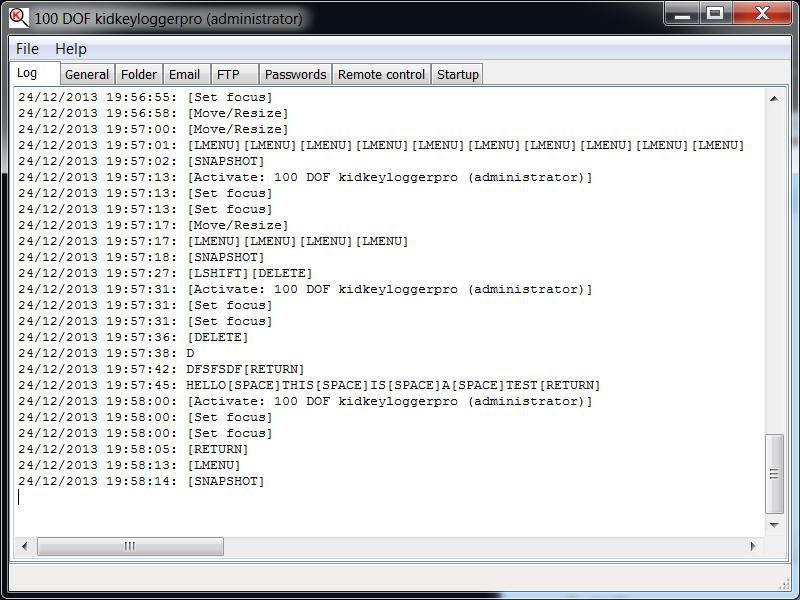 Aplikace může zaznamenávat různé akce, včetně stisků kláves a kliknutí myší, okno zaměření, změny a tak dále. Záznam je možné zobrazit v hlavním okně programu nebo může být uložen v konkrétním umístění pro pozdější použití. Navíc jej můžete nastavit, aby pravidelně zachytil snímky celé plochy pokaždé, když je v jakémkoliv textu zadáno některé z Vámi zadaných klíčových slov nebo v definovaném časovém intervalu.