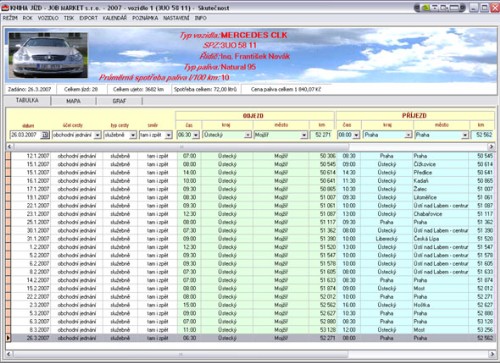 Program nabízí tři režimy vytvoření knihy jízd. 1. režim je plně v režii zadavatel, 2. režim 50% DEMO vytvoří knihu jízd s pomocí PC a 3. režim 100% DEMO je plně v režii PC, stačí pouze zadat plánovaný počet ujetých km, oblast pohybu a období, program samočinně vygeneruje jízdy, které je možno ručně editovat. V nabídce programu je také zobrazení jednotlivých tras na mapě ČR. Konečným výstupem programu je tisk kompletní knihy jízd. Současně lze provést export do souboru CSV a následně použít data v MS EXCEL.