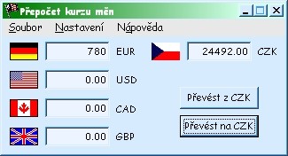 Jedná se o program, který Vám dle zadaného kurzovního lístku převede cizí měnu na naší nebo naopak. Je zde volba 4 preferovaných měn, která vám umožní rychlejší práci s často používanými měnami.