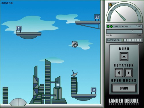 Ocitáte se v roli pilota malého přepravního modulu v blízké budoucnosti. Takovéto moduly zajiš?ují nepřetržité spojení mezi hlavním přístavem a zastávkami "městské hromadné dopravy" (zastávky jsou označeny cedulí s příslušným počtem čekajících lidí). Bohužel, v den vaší služby se porouchaly moduly, zajiš?ující přepravu na vaší trase až na ten váš. Nezbývá nic jiného než začít závod s časem a zajistit plynulou dopravu.