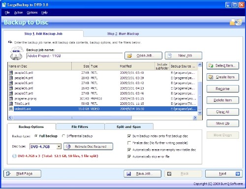 Program LargeBackup to DVD umožňuje zálohování vašich souborů na CD a DVD disky.