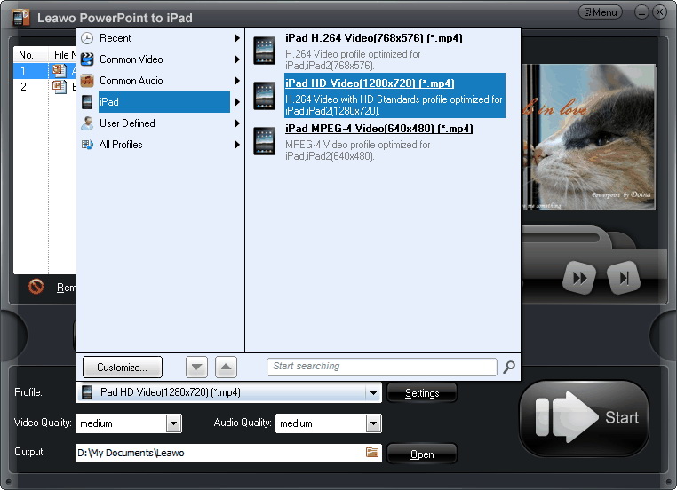 Leawo PowerPoint to iPad je šikovná aplikace, která vám umožní převést vaše soubory PowerPoint na kompatibilní formát pro iPad. Jak již název napovídá, jedná se o převodník PowerPoint dokumentů na video. Převést lze PowerPoint soubory na iPad videa jako MP4 nebo MOV.