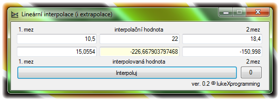 Jednoduchý prográmek pro jednoduchou, někdy ale na kalkulačce trochu pracnou úlohu - lineární interpolaci. Program zvládá také extrapolaci.