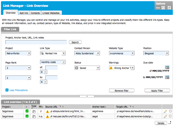 | Detail produktu Link Manager | |