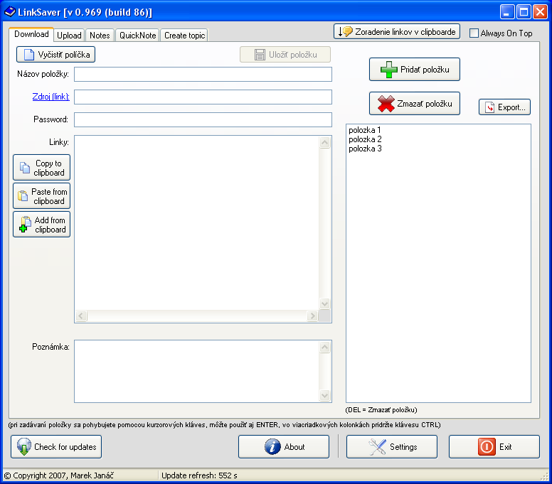 Program slouží na uchovávání odkazů na stáhnutí, linků které jste uploadovali, vašich poznámek atd.