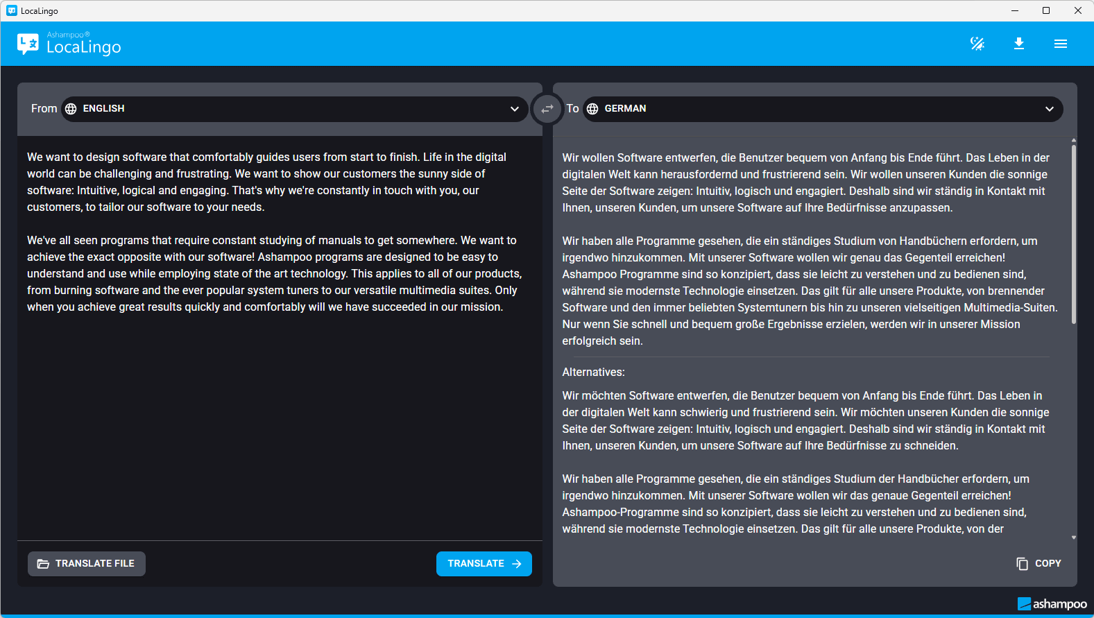 Ashampoo LocaLingo nabízí bezchybné překlady přímo na vašem počítači, což zajišťuje pohodlí i optimální zabezpečení dat!