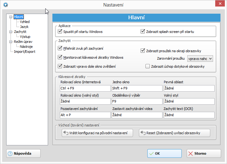 Nastavení Ashampoo Snap 2015Ashampoo Snap 2015 nabízí jednak klasické volby všech programů (Vzhled, Jazyk, chování aplikace), ale také konfiguraci vlastních klávesových zkratek a podrobné nastavení jednotlivých funkcí (např. velikost pevně definovaného výběru nebo maximální šířka výstupu v pixelech). Ashampoo Snap 2015 souhrnemAshampoo nabízí v podobě Ashampoo Snap 2015 rozumný nástroj pro snímání obrazovky. Ten představuje rozumný kompromis mezi šíří nástrojů, možnostmi jejich nastavení a ovládání a složitostí celého prostředí. Bohužel je vícero funkcí dostupno pouze v plné verzi programu: rozpoznávání a extrakce textu pomocí OCR, okamžité zachycení všech viditelných oken coby objektů snímání, použití barevného kapátka napříč aplikacemi, automatické vkládání vodoznaků, flexibilní použití webkamery při videosnímání, vkládání vlastního audio komentáře, zachycování webkamerou a různé parciální varianty nástrojů, jejichž absence zamrzí. Ashampoo navíc lišácky vábí uživatele na neomezenou verzi programu Ashampoo Snap 2015 - ve skutečnosti typickou free verzi - a vyšší verzi v rámci lišáctví pojmenovává Ashampoo Snap 8. Tento způsob lišáctví/marketingu ovšem není ani neprokouknutelný, ani nijak zvlášť sympatický, aby získal Ashampoo zákazníky navíc - to spíš naopak. Výhody Ashampoo Snap 2015