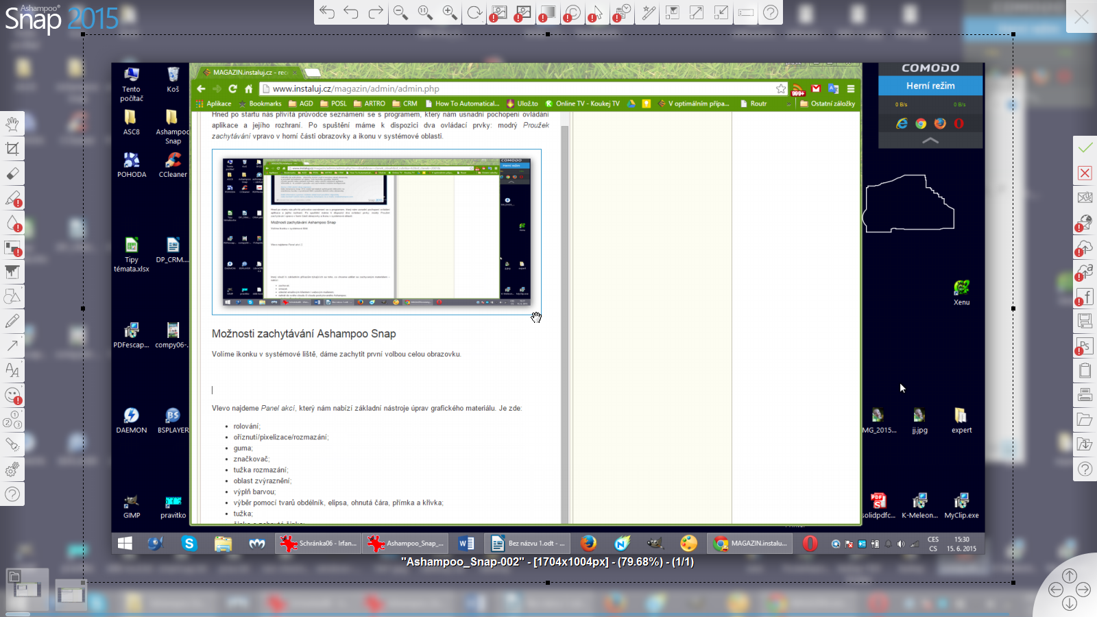 Ashampoo Snap 2015: středně pokročilý screenshoter zdarma KE STAŽENÍAshampoo Snap je typický nástroj pro zachytávání a práci se statickým i dynamickým obsahem pracovních ploch a dalších vstupů. Nabízí mnoho pokročilých nástrojů. V rámci své sofistikovanosti je i velmi přehledný. Vývojáři navíc nabídli neomezenou plnou verzi Ashampoo Snap 2015 zdarma. Prozkoumali jsme její funkčnost a nezáludnost marketingu bezplatnosti...