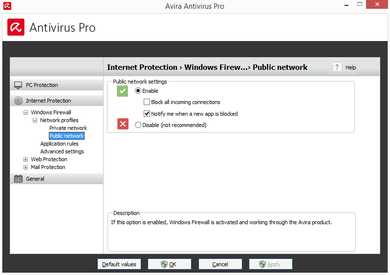 Funkce a nástroje Avira Antivirus ProSystem ScannerSkener Aviry je velmi podrobně škálován. Můžeme cílit systémové disky, připojitelné disky, pouze adresář Windows či Dokumenty, skenovat spuštěné procesy a hledat rootkity. Jeho nastavení (Configuration) umožňuje konfigurovat analýzu bootovacích sektorů a MBR, optimalizaci využití systémových prostředků, kontrolu integrity analyzovaných souborů a široká nastavení heuristiky, výjimek a reportů. Real-Time ProtectionOkno modulu dává nahlédnout neustále běžící monitoring této funkce + umožňuje upřesnit její fungování pomocí nastavení odpovídajících nastavení antivirového skenu. Přímo v modulu získáme podrobné informace o případně zachyceném viru a můžeme využít odkaz na pomoc anglicky mluvících specialistů. FirewallPoložka Firewall nás zpraví o zapnutí firewallu a nabídne jeho podrobnou konfiguraci zahrnující chování v soukromých a veřejných sítích, vytváření aplikačních pravidel a odkazující i k podrobným nastavením. Web ProtectionWeb Protection je modul ochrany internetového provozu. Neustále skenuje prvky prohlížených webů a zabezpečuje počítač před URL adresami vyhodnocenými coby rizikové v kategoriích malware, phishing, podvod a spam. Umožňuje využití makrovirové heuristiky s třístupňovou mírou detekční citlivosti, volbu akce po detekci, nastavení výjimek a blokování podezřelých plovoucích rámů (tzv. I-frames). Mail ProtectionOchrana emailového klienta umožňuje specifikovat příchozí maily, kterých protokolů skenovat, které porty a nabízí i sken mailů odchozích. Stejně jako webová ochrana umožňuje zvolit makrovirovou heuristiku a její úroveň, akci po detekce a způsoby oznámení likvidace nakažených mailů. Social NetworksSocial Networks nás nasměřuje na službu SocialShield, která po zadání přihlašovacích údajů dítěte na Facebook, poskytne přehled jeho přátel, fotek a aktivit v týdenních přehledech. Dítě je informováno o tom, že je předmětem ochrany Avira Social Network Protection. Android SecurityAndroid Security slouží k ochraně smartphonů s Androidem. Nabízí skenování malwaru, blacklisty nebezpečných kontaktů a Anti-Theft Protection - ochranu proti ztrátě a krádeži zařízení. Ostatní prvky a nastavení Avira Antivirus ProNásledují typické prvky antivirových programů. Typické a nevybočující je i jejich provedení - najdeme mezi nimi:
