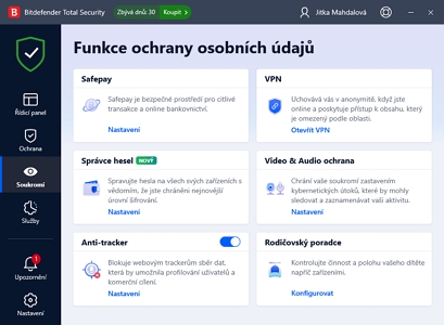 Funkce ochrany osobních údajůDo ochrany osobních údajů spadá u Bitdefenderu široká škála dat. Najdeme zde: