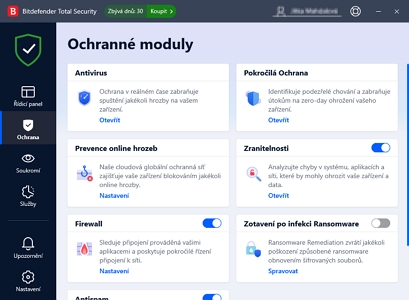 Nastavení skrývající se pod jednotlivými profily jsou spíše jednodušší a nevyvolávají důvěru, se kterou by uživatel svěřil úpravu těchto nastavení automatickému režimu jejich přepínání. Ochrana datOchrana dat je skartovačka. Trvale smaže soubory nejen ze systému, ale i z fyzického disku. Jak tak činí, ovšem neprozradí. NastaveníNastavení obsahuje pouze globální nastavení aplikace. Nastavení jednotlivých modulů jsou přímo u modulů, což značně zvyšuje orientaci v aplikaci. Ovšem kapku zde chybí pokročilá nastavení. Bitdefender evidentně spoléhá na co nejjednodušší interakci s uživatelem. Bitdefender Internet Security celkemBitdefender disponuje špičkovým softwarem. Patří k nejlepším antivirům na světě a výborně se vypořádává i s nejnovějšími hrozbami typu ransomware, kryptominery, nové typy červů a malware vytvářející botnety. Tady už vlastně nemá co ladit - jen držet nasazenou laťku. Bitdefender navíc skutečně neskutečně vylepšil uživatelské rozhraní. Zmizel chaos v modulech, jejich uspořádání a jejich nastavení. VPN klient už se dá vyzkoušet v rámci trial verze - co se na druhou stranu nedá vyzkoušet je ochrana před krádeží. Ale co, to jsou jen dočasné chybky - patrně na straně online portálu. Jako úlitbu uživatelům Bitdefender nechává Multi optimalizátor. Dokud si ovšem chlapci nepohrají s jeho zacílením, nemuseli by ho do aplikačního balíčku balit vůbec. A stejně tak by se mohli zachovat k Profilům. Nemalým plusem Bitdefenderu je, že na rozdíl od konkurence není viditelně spojen s Ruskem či s Čínou. A ani to není pravděpodobné, neboť značka Bitdefenderu přerostla hranice země svého původu Rumunska už dávno. Proč se spolehnout Bitdefender Internet Security?