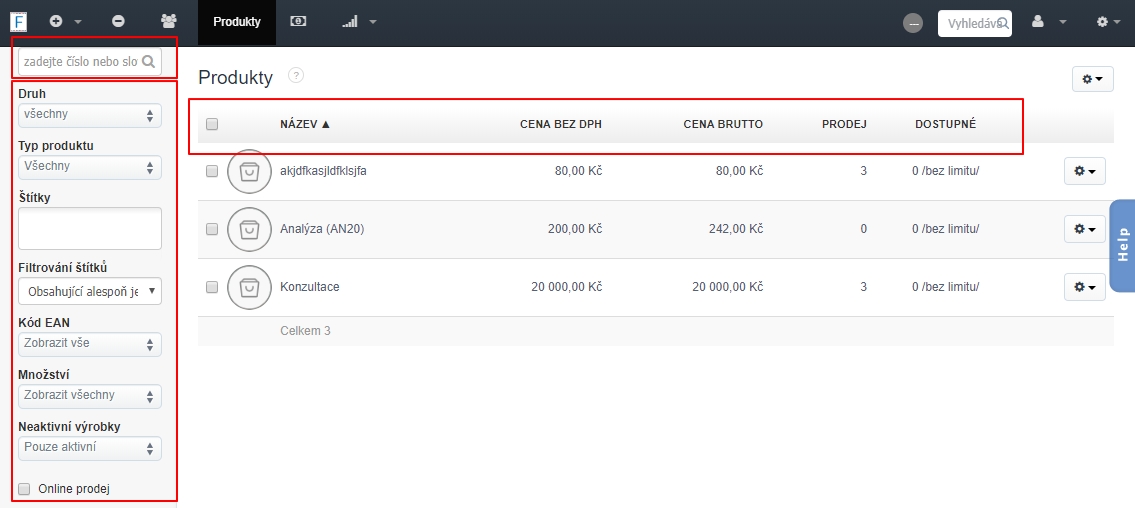 Podpůrné databázeNejen fakturaci, ale i skladové evidenci a účetnictví slouží podpůrné databáze Zákazníci, Produkty a Platby. Databáze je možno plnit ručně a za pomoci ARES, nicméně jejich extrémní výhodou je automatické plnění databází z vytvářených dokladů. To ocení každý živnostník a každá firma, v níž se nedostává pracovních sil na vyplňování nesčetných zákazníků, produktů, jejich vlastností a poznámek k nim. Díky této automatizaci se databáze snadno naplní v průběhu vystavování dokladů sama => a následně slouží k ještě větší efektivitě aplikace BitFaktura. Položky je možno vytřídit dle požadovaných parametrů, a to sice:
