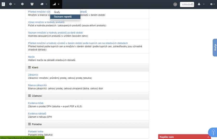 Modul opět nabízí vysoce interaktivní prostředí snadného přechodu od dokladu k faktuře či od položky dokladu k detailu produktu. Samozřejmě vytváří následné zápisy dat, vytváří evidenci a vede přehled. A co potěší všechny, kteří nemusí využívat přímo skladovou evidenci je to, že ji fakticky mají k dispozici v zjednodušené podobě databáze Produkty. Příjmy, výdaje a jejich další využitíFaktury v rámci logiky aplikace nejsou jen mrtvými položkami, nýbrž je BitFaktura dále zpracovává. Proto pod položkami Příjmy a Výdaje najdeme databázi příjmových faktur a dalších dokladů a faktur evidujících výdaje. Databáze umožňují snadné vyhledávání v dokladech, jejich seřazování i administrativní práci se stavem faktury – tj. změnu označení či snadné zaznamenání faktur po splatnosti. Přímo v Příjmech a Výdajích nechybí ani základní přehled o stavu příjmů a výdajů v podobě informace o množství dokladů a jejich úhrnné částce. Období úhrnu si přizpůsobíme v levém panelu. Pokročilejší zpracování dat pak najdeme v sekci Reporty – Seznam reportů. Zde najdeme