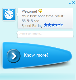 Instalace BootRaceru je sice v angličtině, ale spočívá pouze v odsouhlasení podmínek užívání. Program se sám nainstaluje do Program Files, případně Program Files (x86) a přivítá nás výchozí obrazovkou. Po odkliknutí stopek – nebo položky Boot Time Test aplikace konstatuje, že rychlost bootování změří při příštím restartu a rovnou ho nabídne. Po restartu a přihlášení jako první uvidíme digitální stopky stopující čas do plného rozběhnutí systému. Poté nás BootRacer seznámí s časem čistého bootování (bez vymezení časových údajů před bootováním a doby přihlášení uživatele do systému). Tento údaj se hodí zvláště, pokud zkoušíme různé úpravy systémových nastavení týkajících se startu systému. Napoprvé není na škodu zjistit také podrobnosti skrývající se pod Know more? Po odkliknutí uvidíme následující okno: BootRacer identifikuje systém a zobrazí i další části startu počítače. Vidíme zde nevyčíslenou hodnotu úseku předcházejícího zavádění systému - tj. doby, po kterou se dá vstoupit do BIOSu, případně po kterou běží zavaděč a dává nám vybrat ze spustitelných systémů na počítači s vícero systémy. Poté následuje zavádění systému Windows přerušené pouze časem, než se uživatel přihlásil do systému. A následuje dokončení spouštění systému při již běžící ploše. BootRacer názorně zobrazuje časy, vyčísluje samotné bootování - a vyhodnocuje pomocí vnitřních měřítek pro konkrétní systém. Pod položkou Speed up! se skrývá odkaz na program SpeedUpMyPC od Uniblue Systems Limited. V History získáme přehled všech startů systému provedených za přítomnosti BootRacer včetně vyhodnocení nejrychlejšího startu a možnosti exportu záznamů. A po odpálení Contest... BootRacer