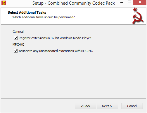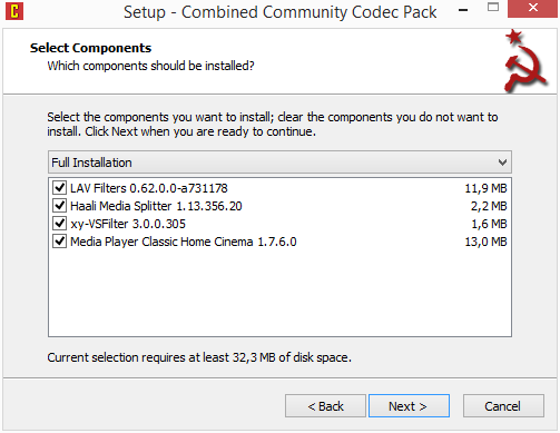 První dva cíle plnil vždy perfektně, proto si vydobyl své místo vedle nejčastěji instalovaného obra K-Lite Codec Pack. Před instalací je vhodné se ujistit, že v systému nejsou nainstalovány jiné balíky kodeků. A předejít tak nejen problémům s přehráváním médií a systémovým konfliktům vůbec. Pokud si nejste ne/přítomností tohoto softwaru jisti, použijte utilitku CCCP Insurgent, která vám pomůže detekovat balíky kodeků a filtrů i jakékoliv samostatné filtry a kodeky. Vývojáři CCCP doporučují „odstranit kodekové balíky i samostatné filtry typu DirectVobSub, ffdshow, CoreVorbis, CoreAAC. Můžete zachovat DivX a Xvid... Neměňte nic, co jste sami do systému neinstalovali – vždy se můžete doptat na CCCP fórech. A restartujte – nevynechejte tento krok kvůli lenoře.“ Vyhnete se tak pozdějším problémům a reinstalacím celého systému. Po rebootu spusťte instalátor, určete umístění programu a zvolte typ instalace. Vybrat můžete mezi:
