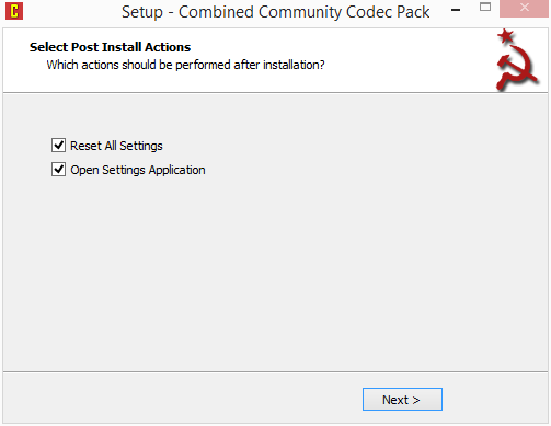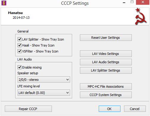 Při špatné kombinaci voleb můžeme vše vrátit pomocí Repair CCCP, které obnoví výchozí nastavení. CCCP podporuje všechna aktuální Windows i nejnovější mediální formáty. Jeho provedení je malé a úsporné. Nastavení jednoduché a v podstatě přizpůsobené maximě nainstalovat a zapomenout. Je výbornou alternativou konkurenčních zbytečně velkých balíků kodeků.