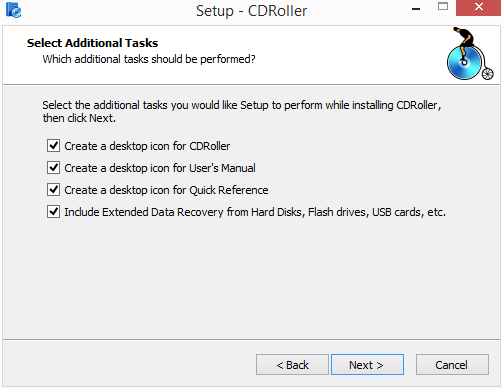 CDRoller snadno nainstalujeme – krom obvyklých voleb nabídne vytvoření ikon na plochu pro přímý přístup k uživatelskému manuálu a Quick Reference a podporu rozšířených možností obnovy dat. Po spuštění CDRoller si vybereme, zda budeme obnovovat data z optické mechaniky (CD, DVD, Blue-Ray), nebo z hard disku, flash disků, usb karet aj. Po této volbě se zobrazí výchozí obrazovka se seznamem příslušných připojených zařízení. Každou jednotku můžeme rozkliknout – průzkumník nám zobrazí obsažené soubory – a vybrat soubory k otestování možnosti obnovy a obnově samé. Po otestování zjistíme, nakolik jsou soubory čitelné a zda je možné je obnovit. Krom obnovy samotné můžeme využít i dalších nástrojů programu CDRoller. Patří k nim: