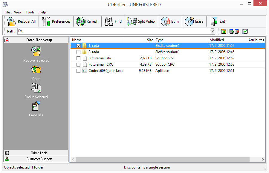 CDRoller: obnova téměř ztracených dat CD, DVD a flash zařízení KE STAŽENÍCDRoller primárně vznikl za účelem obnovy dat optických médií – tedy CD, DVD a Blue-Ray disků. V poslední verzi přibyla podpora obnovy dat na hard discích, flash discích a jiných paměťových kartách. Jeho výhodou je možnost nasazení tam, kde už jiné programy selhaly, za pomocí postupů, jako jsou vysoký počet opakování pokusů o načtení, velká síla sledování dat a změna přístupu k datům.
