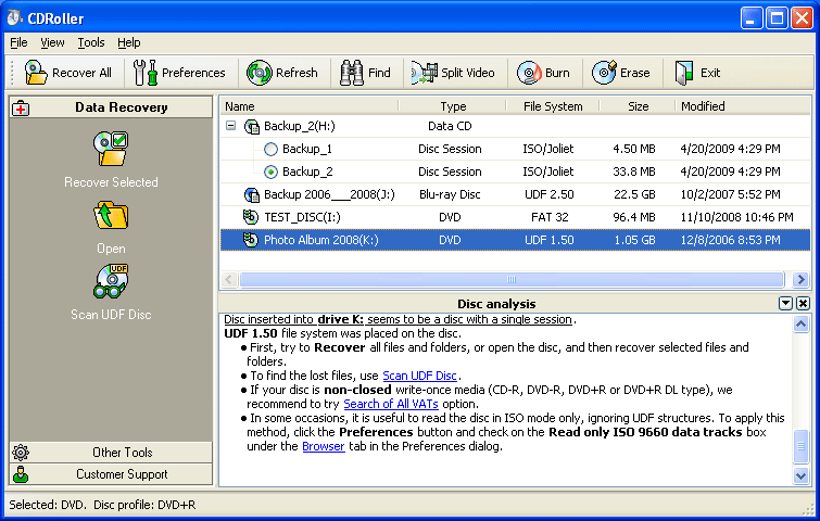 Jinak je aplikace určena k obnovování smazaných nebo v uvozovkách ztracených dat z vašich CD a DVD, což je rozhodně hodně nepříjemná věc, nicméně díky aplikaci s názvem CDRoller si každý uživatel může obnovit smazané data z těchto médií a t pomocí prakticky jednoho tlačítka.