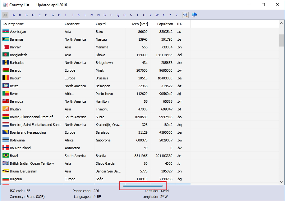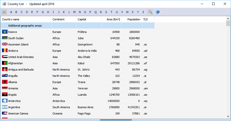 Country List je přenosná aplikace - databáze veškerých zemí světa. U jednotlivých států najdete základní informace: