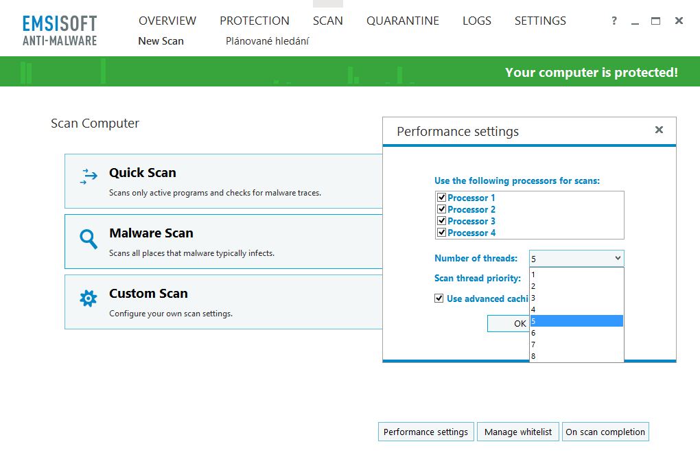 Emsisoft Anti-MalwareEmsisoft Anti-Malware běží ve Windows od XPéček nahoru. Sken sám je schopen zpapat nějakých 200 MB RAM, vývojáři doporučují pro optimální funkci a zachování funkčnosti celého systému alespoň 1 GB RAM celkem. Velmi dlouhé skeny lze značně redukovat využitím beta aktualizačního kanálu. Výhody Emsisoft Anti-Malware