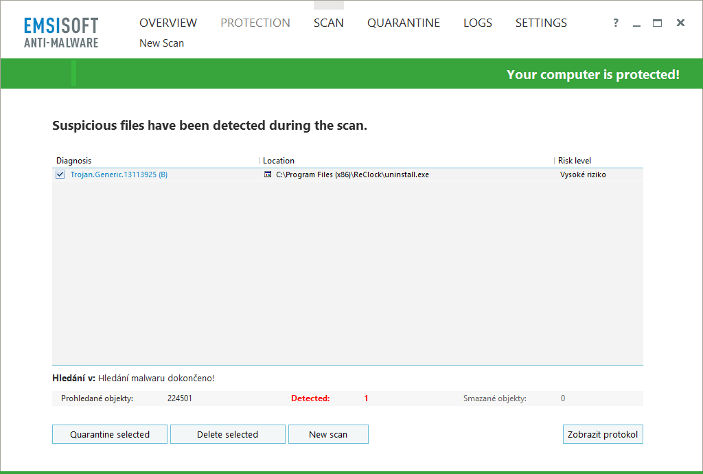 Emsisoft Anti-Malware: oč pomalejší, o to účinnější KE STAŽENÍEmsisoft Anti-Malware na první pohled asi příliš nezaujme. Nabízené skeny jsou velmi dlouhé a rezidentní štíty lze vyzkoušet pouze na 30 dní. Čím si ovšem získá pozornost, je velmi vysoká účinnost, potvrzená např. Real-World Protection Test specialistů z AV-Comparatives, kde se umísťuje na příčkách nejvyšších. Proto stojí nejen za trpělivost, ale i za koupi.
