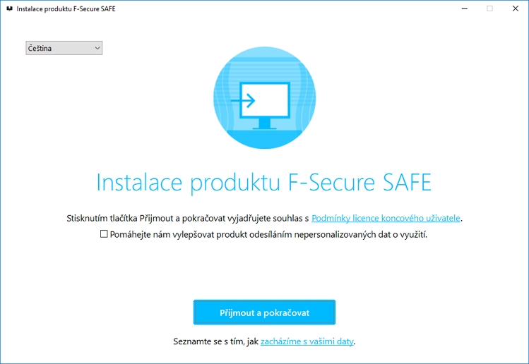 F-Secure Total se skládá ze tří programových modulů: zabezpečení počítače F-Secure Safe, VPN klienta F-Secure Freedom a správce hesel F-Secure Key. Cesta ke všem třem vede přes vytvoření a přihlášení se k účtu na portále F-Secure. Instalační obrazovka napoví, že F-Secure Total je lokalizován do mateřštiny všech Čechů rodilých. Instalátor sám ze systémového nastavení zjistí výchozí jazyk systému a zvolí ho jako výchozí jazyk instalace. Licenční podmínkami se odsouhlasí prostým aktem nainstalování, a tak na uživatele nezbývá jiná volba než se zapojit či nezapojit do vylepšování produktu odesíláním nepersonalizovaných informací o využívání aplikace. Systémovou cestu a vytvoření zástupců instalátor s uživatelem nekonzultuje - prostě F-Secure umístí do C:\Program Files (x86), na plochu přidá ikonu a další zástupce do nabídky Start. Ať už po instalaci antiviru restartujete či nikoliv (F-Secure to nevyžaduje, redakce doporučuje) čeká vás na úvodní informace uklidňující hláška o zabezpečení počítače. Ovšem jen tehdy, když povolíte rozšíření Browsing Protection by F-Secure pro používané prohlížeče. AntivirusSekce Antivirus nabídne sken na vyžádání bez bližší specifikace. Ten projede systémové složky a běžné destinace skenů relativně rychlý skenem. Po dokončení nabídne i hlášení kontroly, ze které se dozvíme, že v rámci testu používá moduly (aktuálně ve verzích):