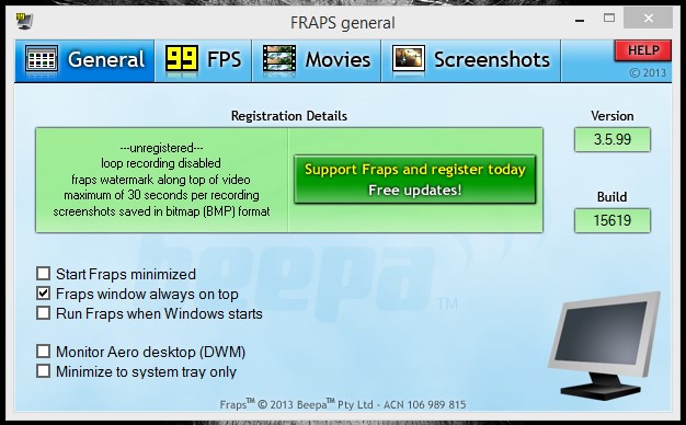 Fraps - snadný záznam videosekvencí a screenshotů KE STAŽENÍDíky jednoduché aplikaci pro operační systém Windows Fraps si budete moci dělat záznamy z vaši obrazovky na stolním počítači nebo notebooku. Jedná se o velice užitečnou, malou a hlavně jednoduchou aplikaci, kterou si stačí pouze a jenom nainstalovat, nutno podotknout, že zcela zdarma nainstalovat, spustit a začít pohodlně používat.