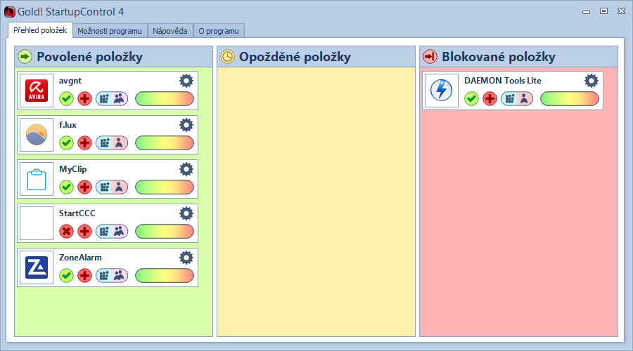 Gold! StartupControl: rozšířená správa programů spouštěných se systémem KE STAŽENÍ ZDARMAŽádná optimalizace systému Windows se neobejde bez prozkoumání programů spouštěných po startu. Bohužel mnoho vývojářů považuje své programy za natolik nezbytné, že se je snaží nacpat do položek spouštěných Po spuštění. Každá aktuálně nepotřebná aplikace tak nejen zpomaluje start, ale většina z nich zůstává navíc aktivní a zbytečně vytěžuje systémové prostředky. Efektivní prořezání těchto programů nabízí aplikace českého autora Gold! StartupControl.