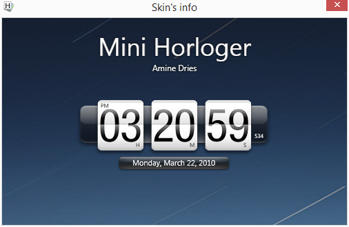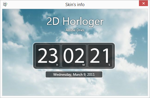 Horloger: stylové hodiny na pracovní plochu KE STAŽENÍ ZDARMAHorloger jsou stylové desktopové hodiny. Nemusíte ostřit na pidičíslička v systémové liště, nemusíte ani inicializovat skrývanou systémovou lištu. Hodiny Horloger si pomocí skinu, průhlednosti a volby Vždy nahoře vyladíte tak, aby co nejvíce vyhovovaly vaší představě o informaci o času.